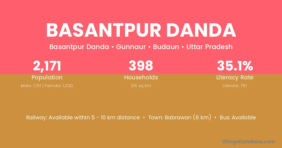 Basantpur Danda village has a total population of 2,171 people, of which 1,151 are males and 1,020 are females.