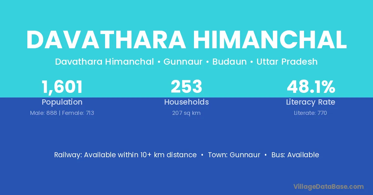 Davathara Himanchal village has a total population of 1,601 people, of which 888 are males and 713 are females.