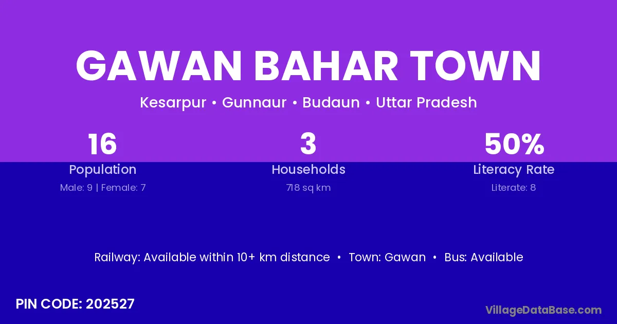 Gawan Bahar Town village has a total population of 16 people, of which 9 are males and 7 are females.