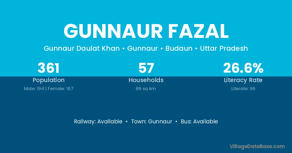 Gunnaur Fazal village has a total population of 361 people, of which 194 are males and 167 are females.