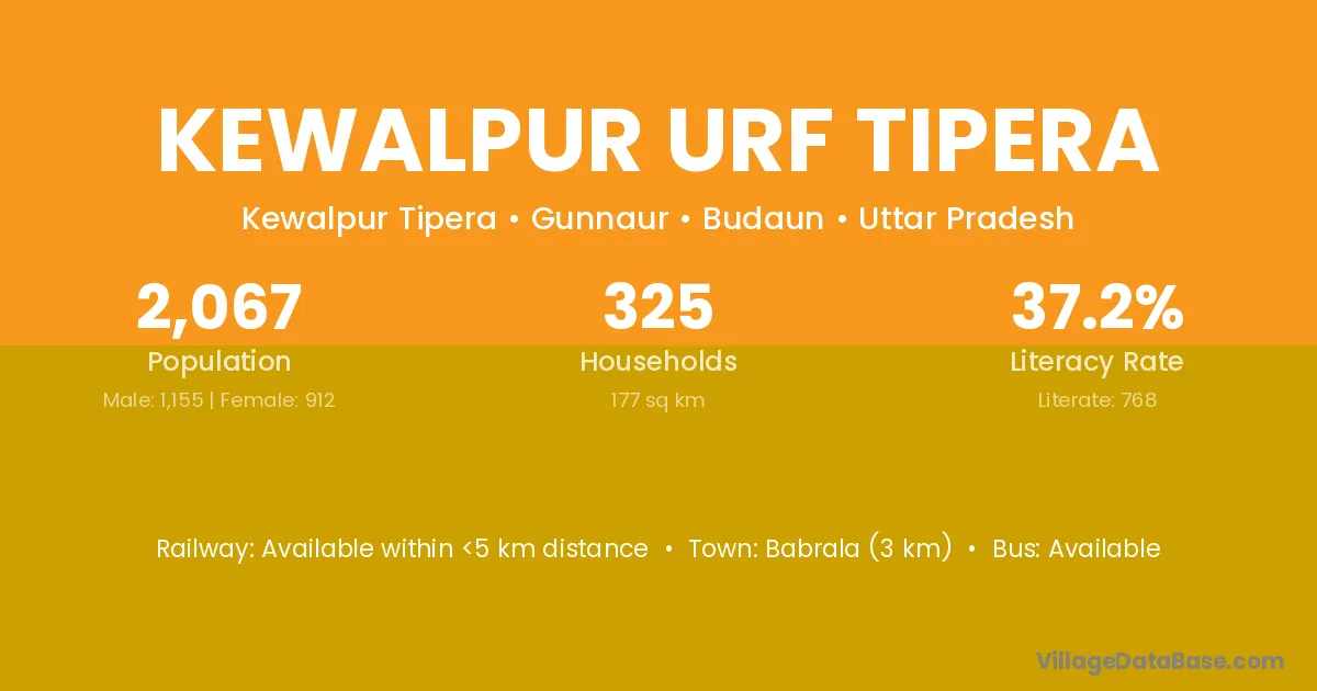 Babrala (3 km) is the nearest town to Kewalpur Urf Tipera village for major economic activities and is located approximately 3 km away.
