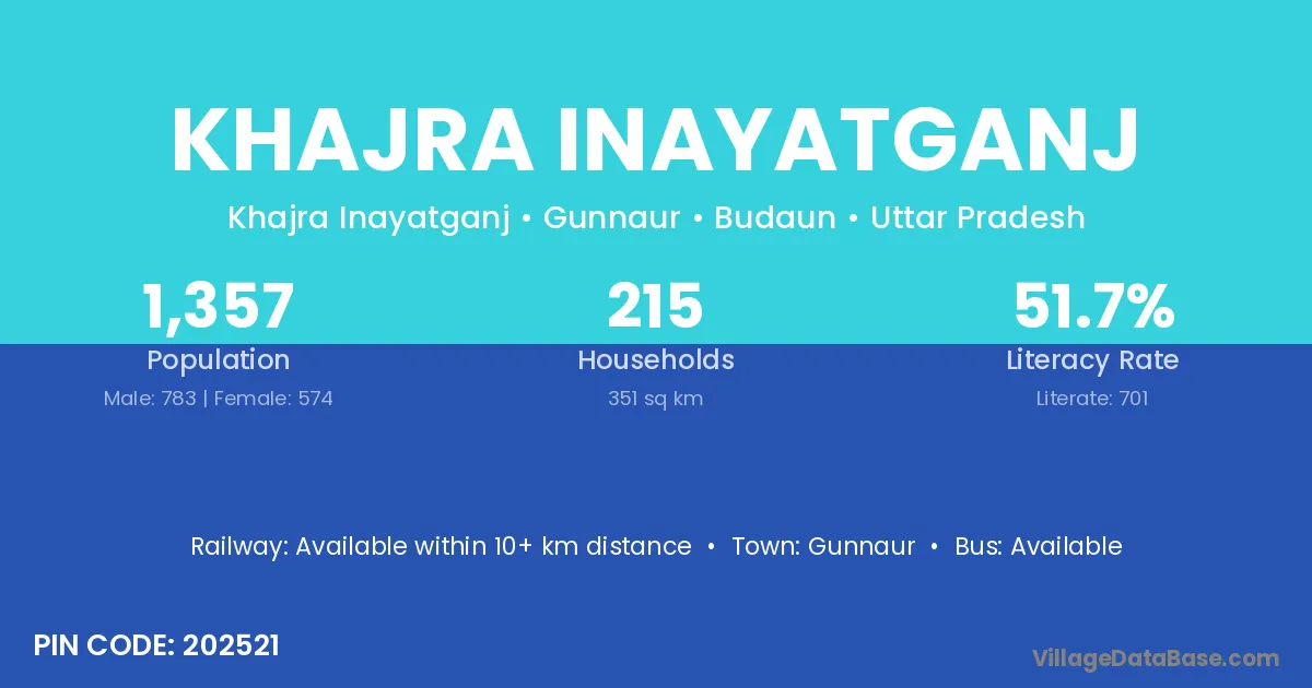 Khajra Inayatganj village has a total population of 1,357 people, of which 783 are males and 574 are females.