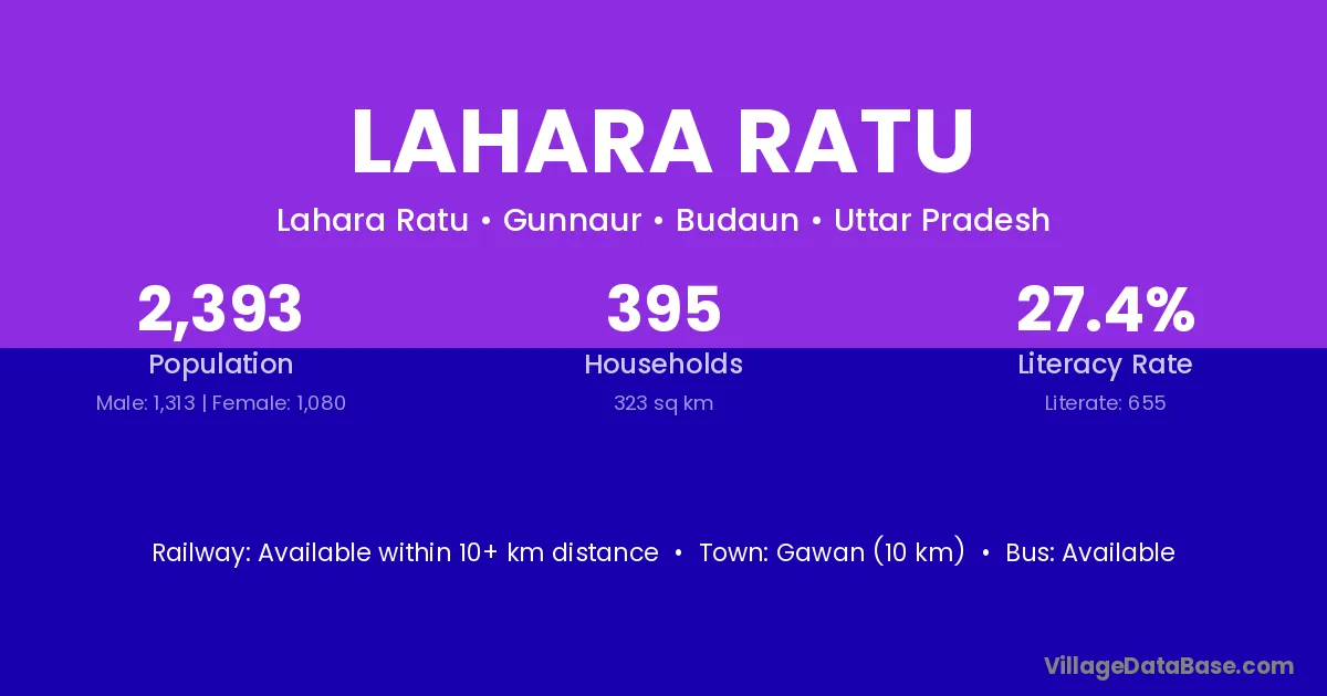 Lahara Ratu village is located in the Gunnaur Tehsil of the Budaun district in Uttar Pradesh .