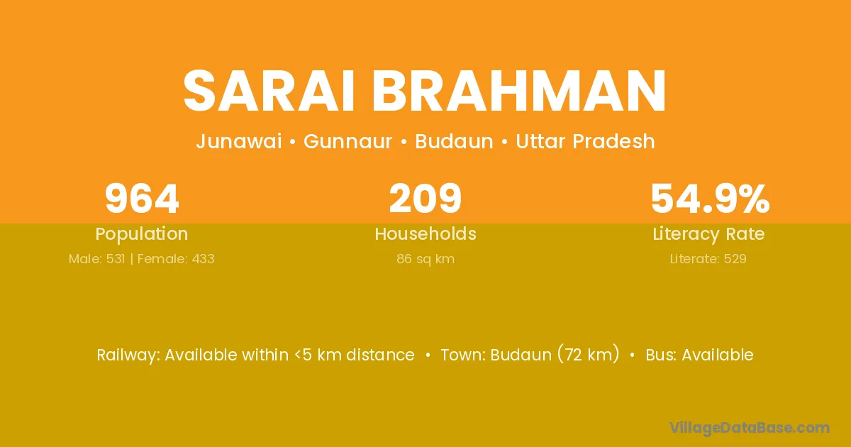 Sarai Brahman village has a total population of 964 people, of which 531 are males and 433 are females.