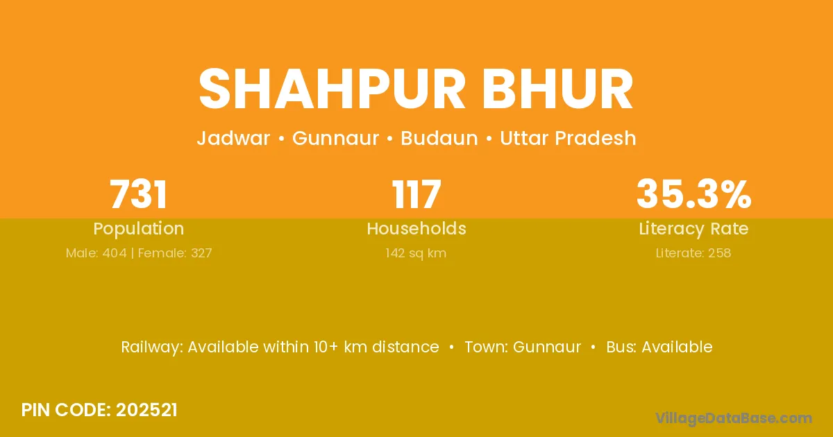 The literacy rate of Shahpur Bhur village is 35.29%. Male literacy stands at 52.48% and female literacy at 14.07%.