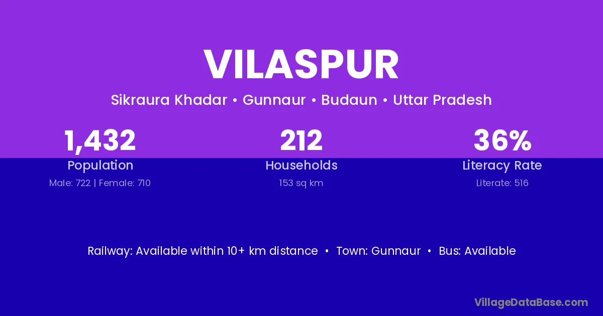 Vilaspur village has a total population of 1,432 people, of which 722 are males and 710 are females.