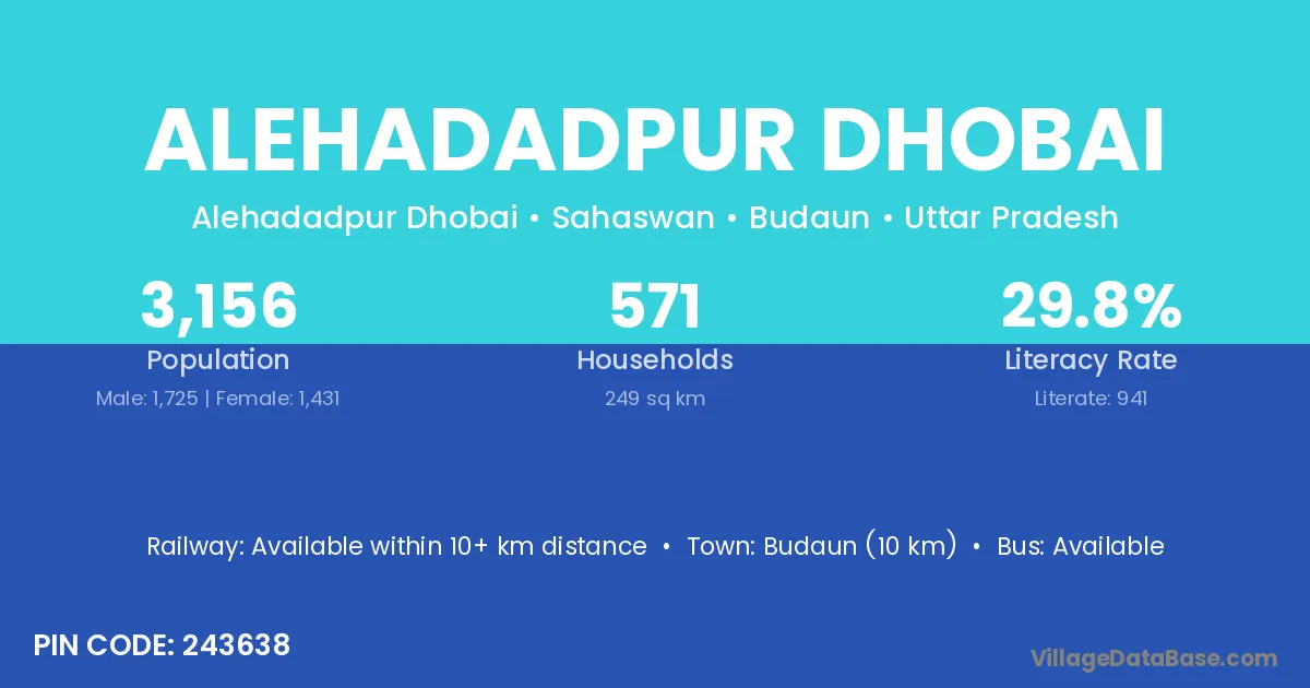 Budaun (10 km) is the nearest town to Alehadadpur Dhobai village for major economic activities and is located approximately 10 km away.