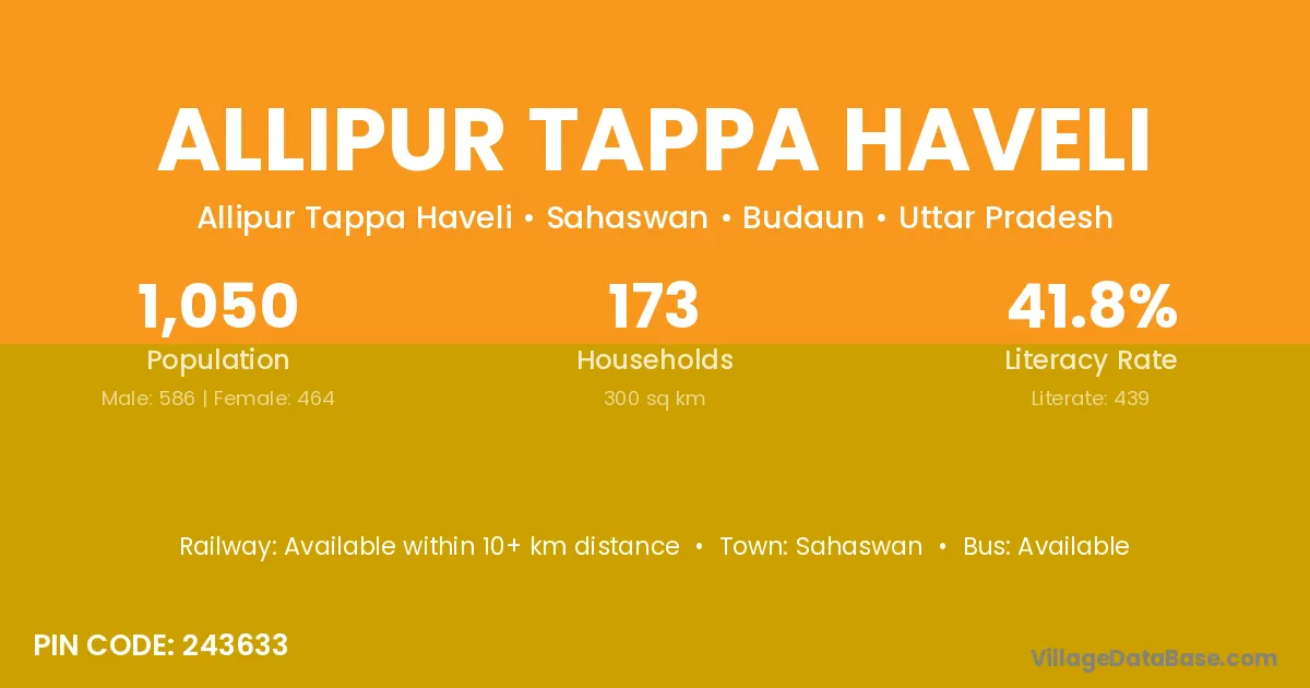 According to Census 2011 information, the village code of Allipur Tappa Haveli village is 243633.