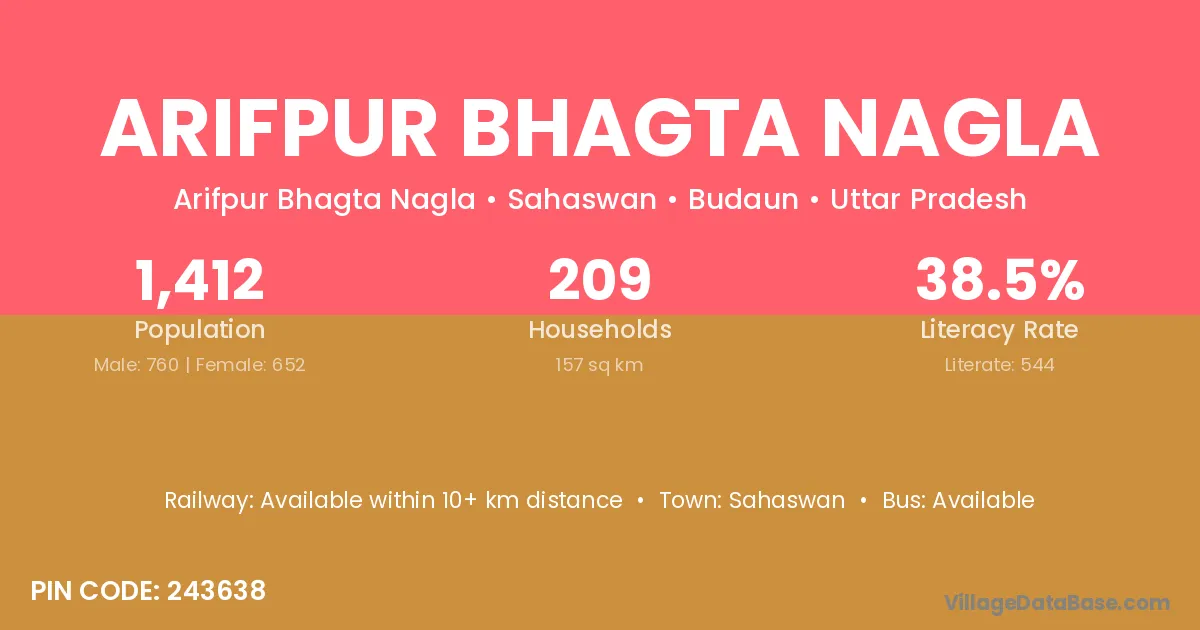 Arifpur Bhagta Nagla village has a total population of 1,412 people, of which 760 are males and 652 are females.