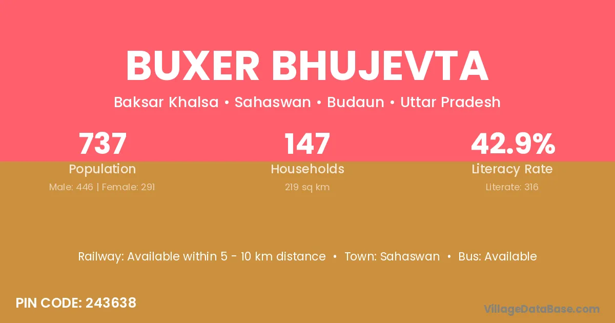 Buxer Bhujevta village has a total population of 737 people, of which 446 are males and 291 are females.