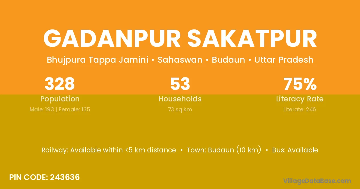 Budaun (10 km) is the nearest town to Gadanpur Sakatpur village for major economic activities and is located approximately 10 km away.
