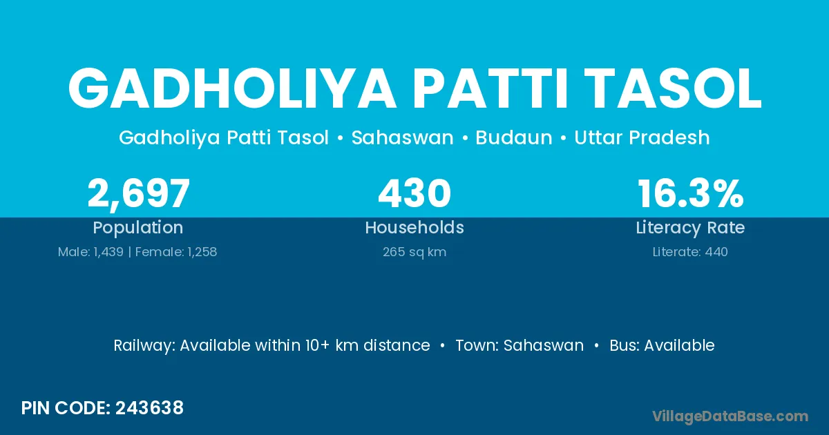 According to Census 2011 information, the village code of Gadholiya Patti Tasol village is 243638.