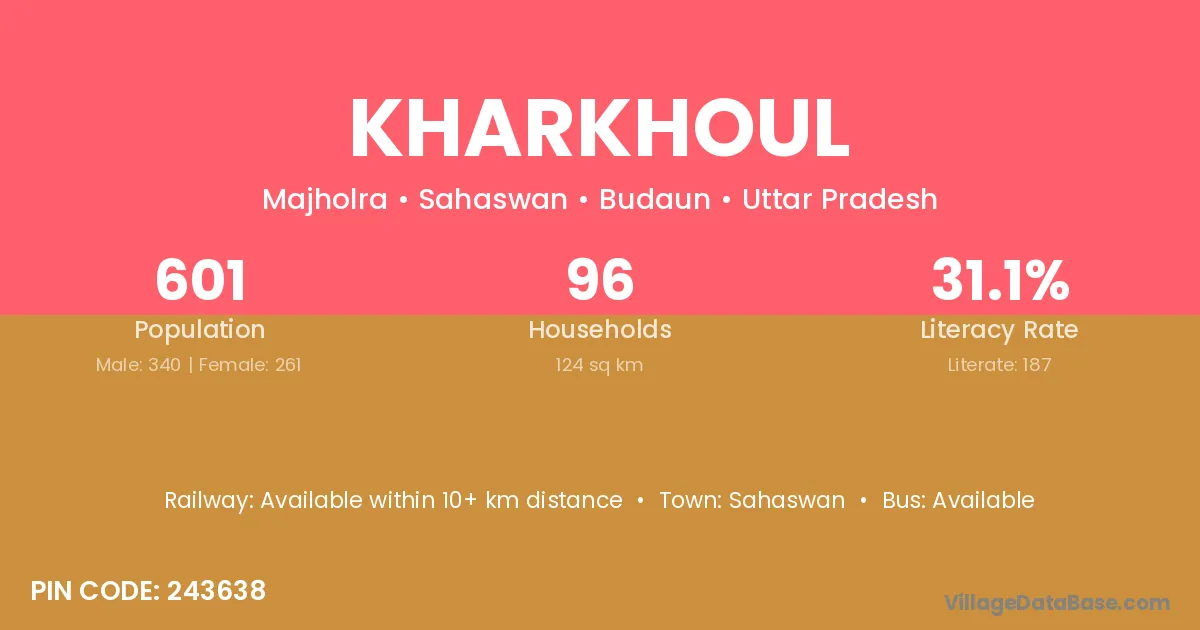 Sahaswan is the nearest town to Kharkhoul village for major economic activities