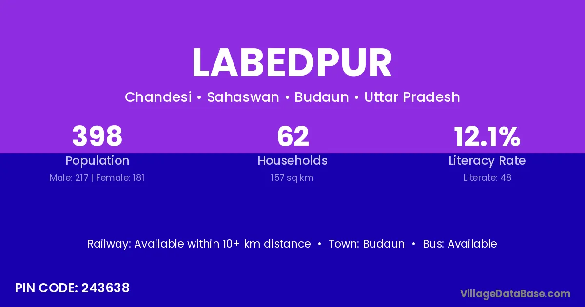 Budaun is the nearest town to Labedpur village for major economic activities