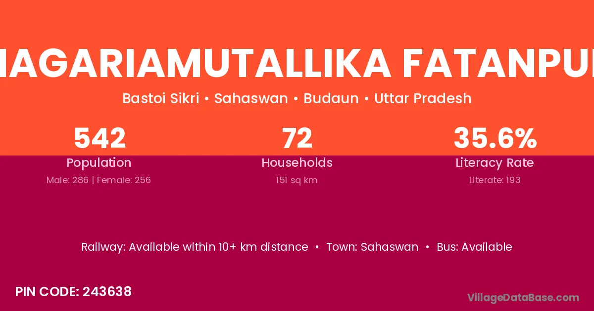 Sahaswan is the nearest town to Nagariamutallika Fatanpur village for major economic activities