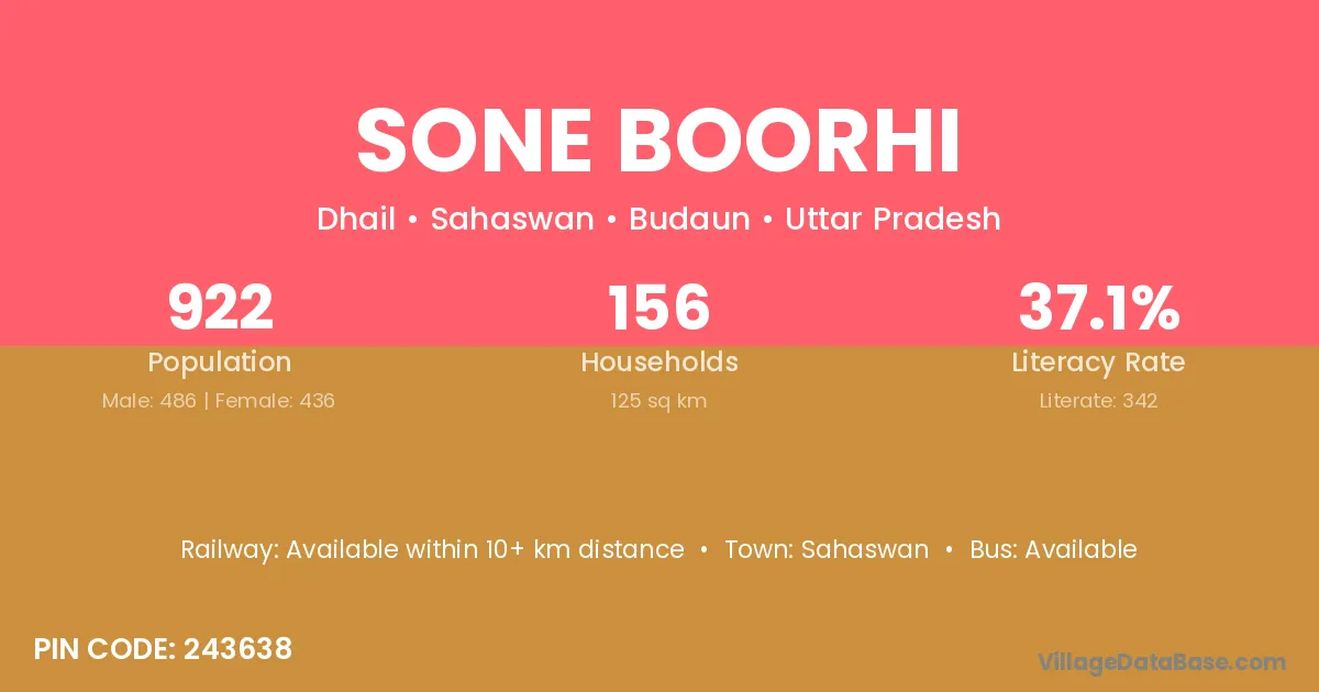 Sahaswan is the nearest town to Sone Boorhi village for major economic activities