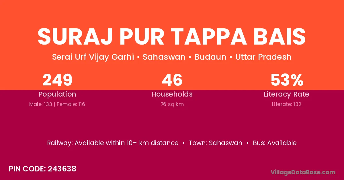 According to Census 2011 information, the village code of Suraj Pur Tappa Bais village is 243638.
