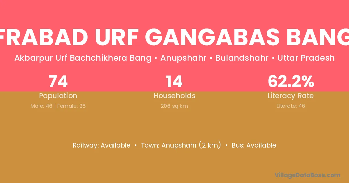 Anupshahr (2 km) is the nearest town to Jafrabad Urf Gangabas Bangar village for major economic activities and is located approximately 2 km away.