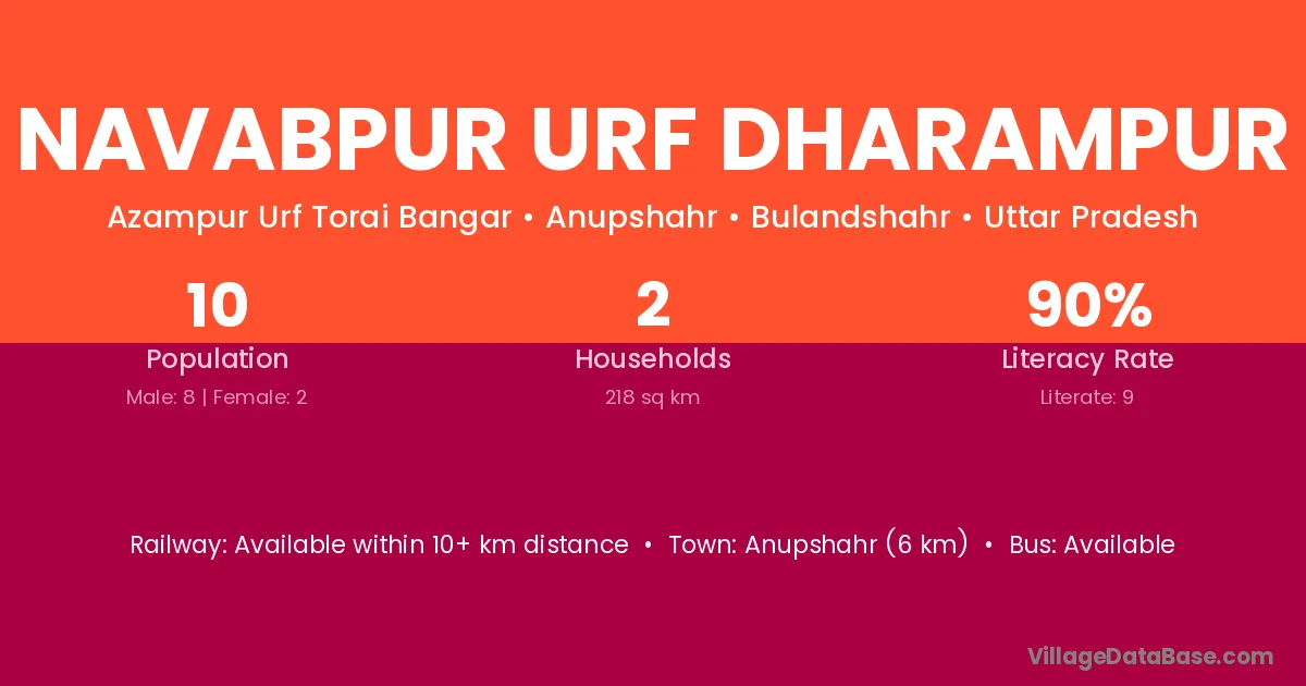 Navabpur Urf Dharampur village has a total population of 10 people, of which 8 are males and 2 are females.