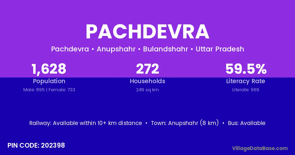 Anupshahr (8 km) is the nearest town to Pachdevra village for major economic activities and is located approximately 8 km away.