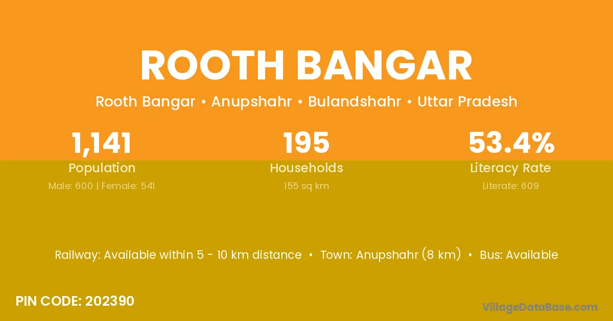 Anupshahr (8 km) is the nearest town to Rooth Bangar village for major economic activities and is located approximately 8 km away.