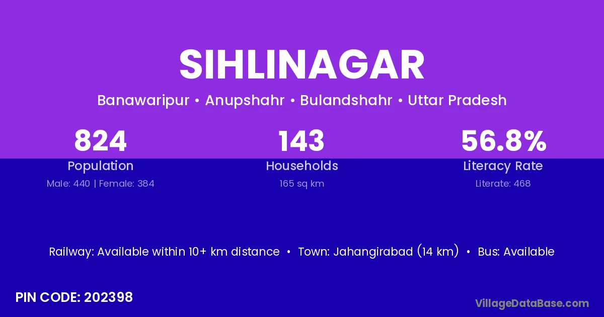 Jahangirabad (14 km) is the nearest town to Sihlinagar village for major economic activities and is located approximately 14 km away.