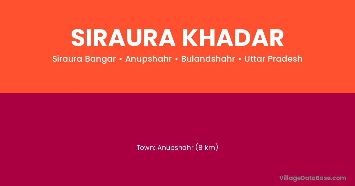 Anupshahr (8 km) is the nearest town to Siraura Khadar village for major economic activities and is located approximately 8 km away.