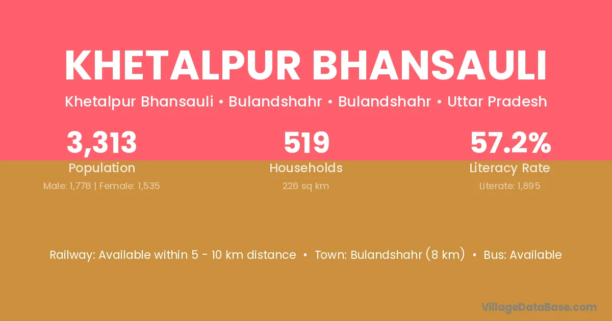 Bulandshahr (8 km) is the nearest town to Khetalpur Bhansauli village for major economic activities and is located approximately 8 km away.