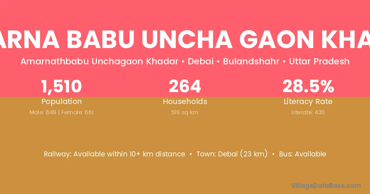 Amarna Babu Uncha Gaon Khader village has a total population of 1,510 people, of which 849 are males and 661 are females.