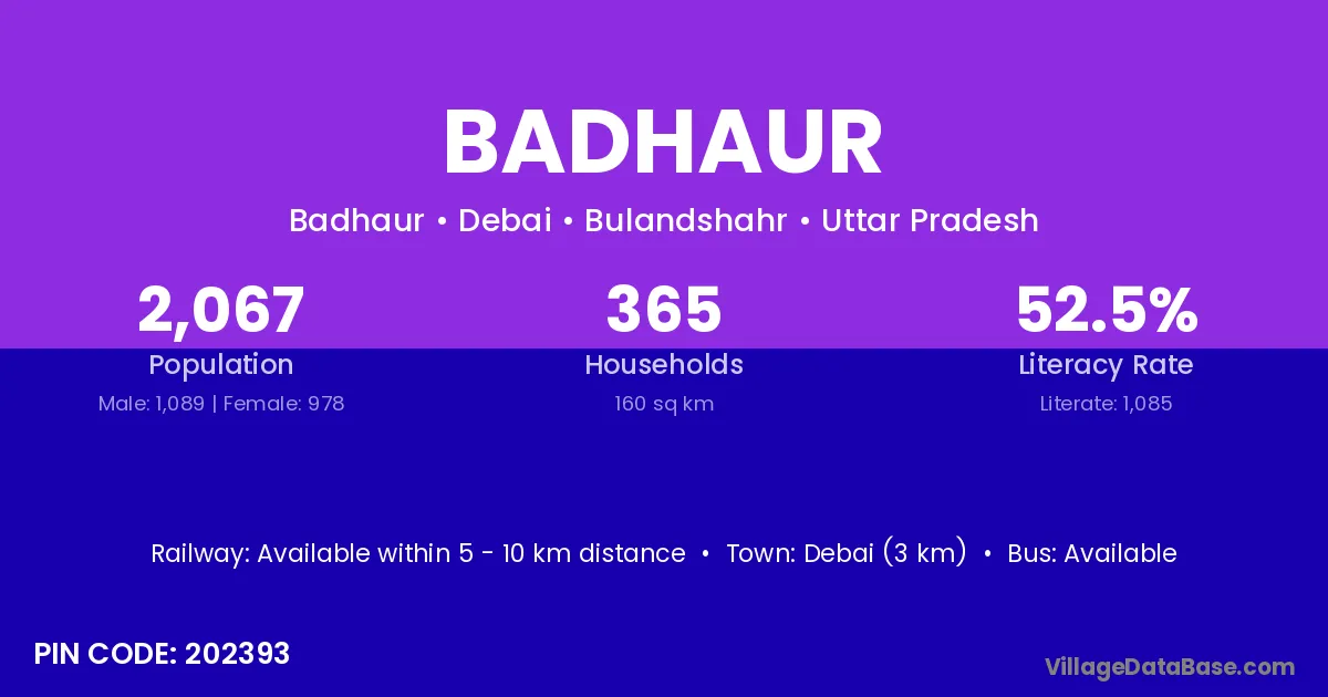 Debai (3 km) is the nearest town to Badhaur village for major economic activities and is located approximately 3 km away.