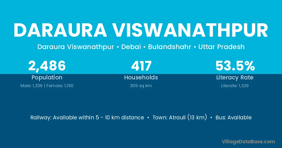 Atrauli (13 km) is the nearest town to Daraura Viswanathpur village for major economic activities and is located approximately 13 km away.