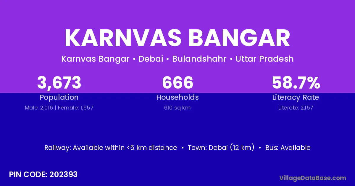 Debai (12 km) is the nearest town to Karnvas Bangar village for major economic activities and is located approximately 12 km away.