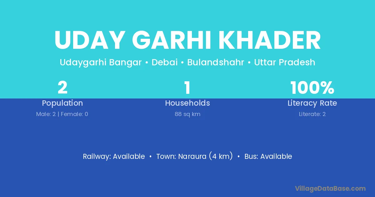 Uday Garhi Khader village has a total population of 2 people, of which 2 are males and 0 are females.