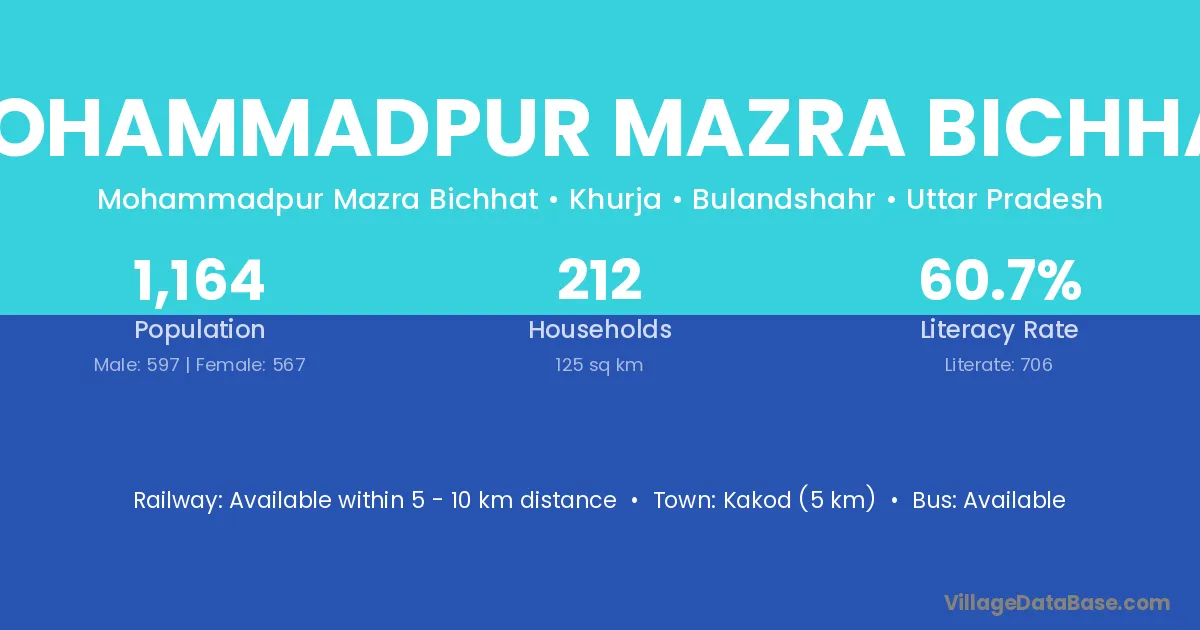 Mohammadpur Mazra Bichhat village has a total population of 1,164 people, of which 597 are males and 567 are females.