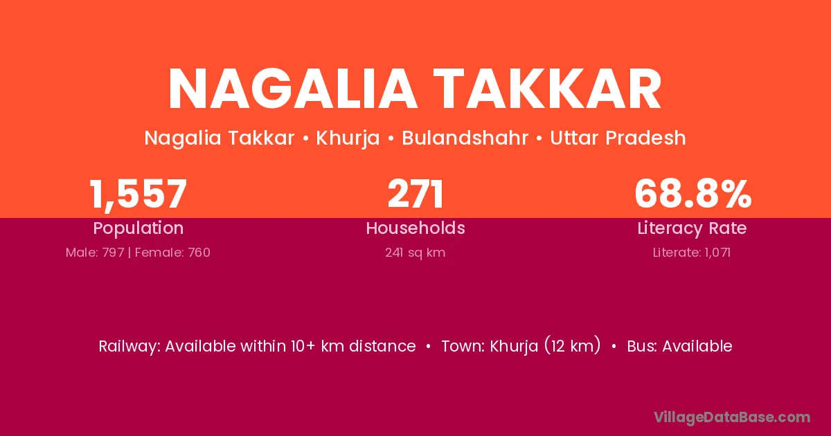 Khurja (12 km) is the nearest town to Nagalia Takkar village for major economic activities and is located approximately 12 km away.