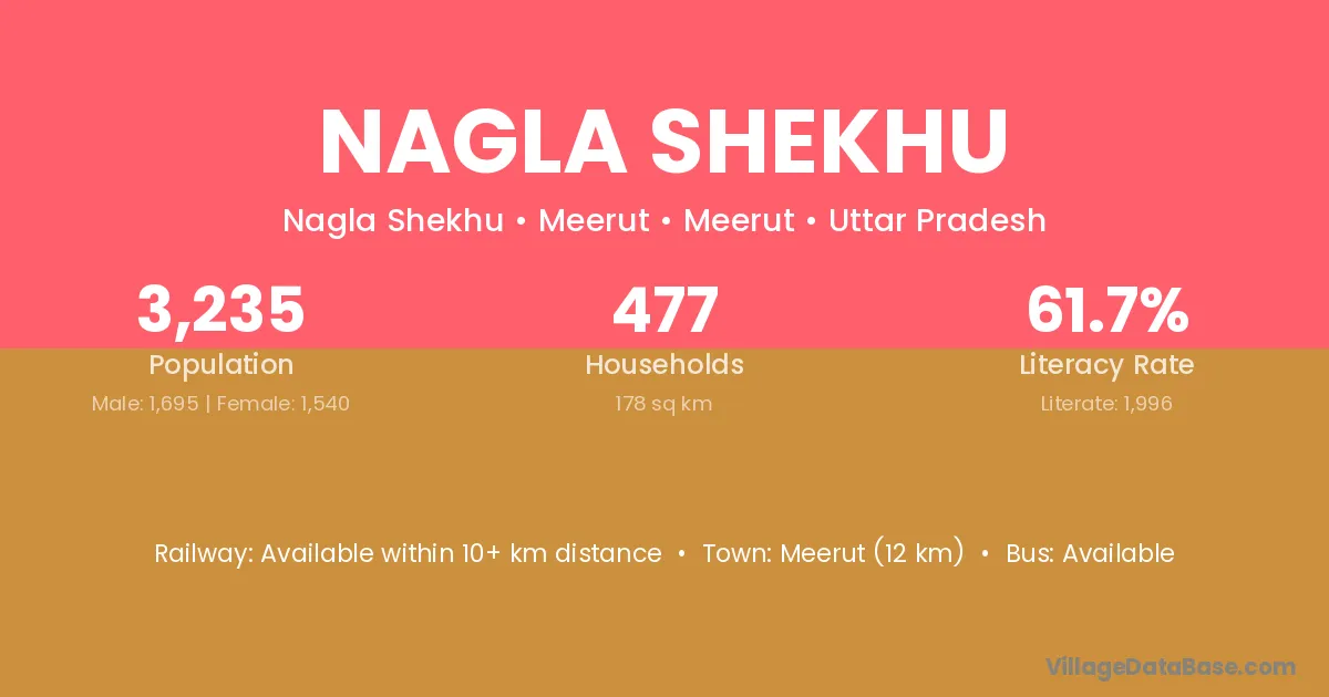 Khurja (8 km) is the nearest town to Nagla Shekhu village for major economic activities and is located approximately 8 km away.