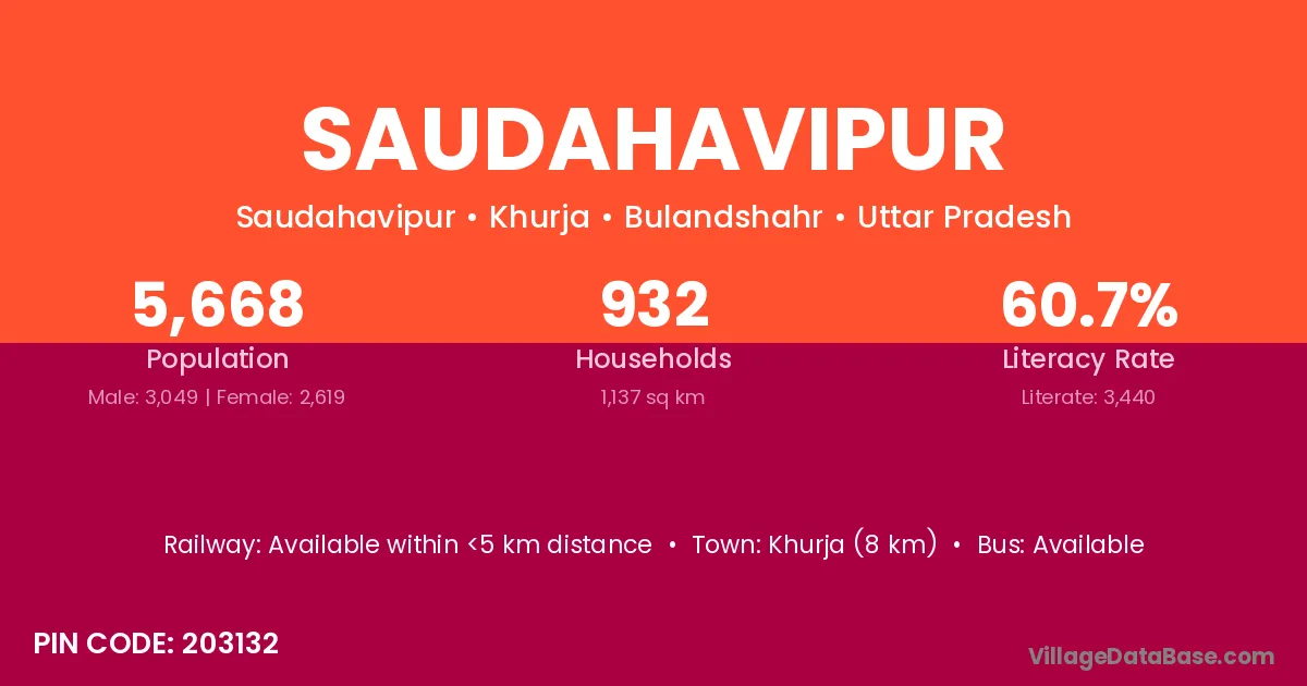 Khurja (8 km) is the nearest town to Saudahavipur village for major economic activities and is located approximately 8 km away.