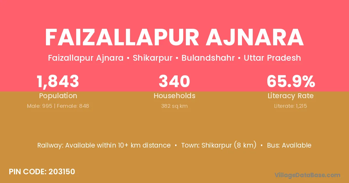 Shikarpur (8 km) is the nearest town to Faizallapur Ajnara village for major economic activities and is located approximately 8 km away.