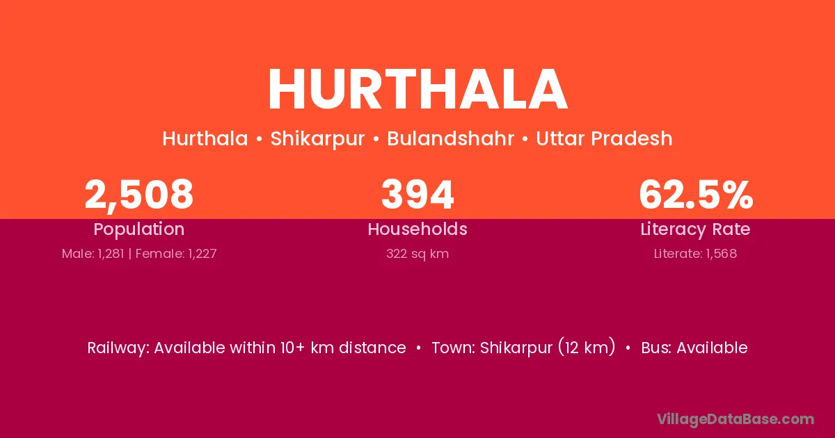Shikarpur (12 km) is the nearest town to Hurthala village for major economic activities and is located approximately 12 km away.