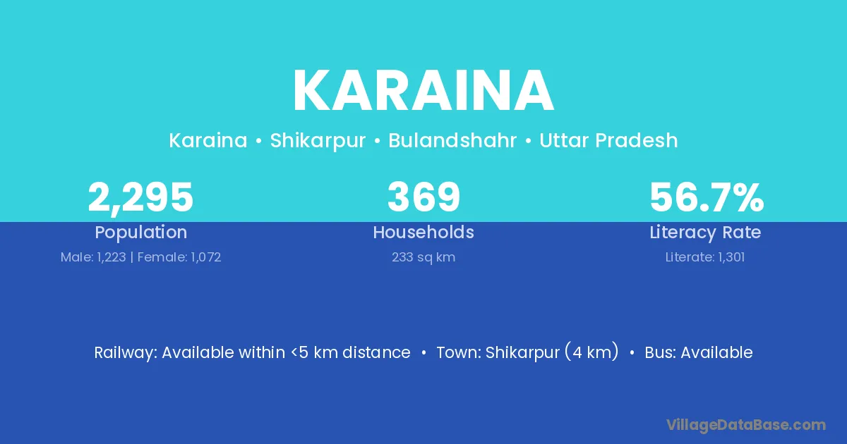 Shikarpur (4 km) is the nearest town to Karaina village for major economic activities and is located approximately 4 km away.