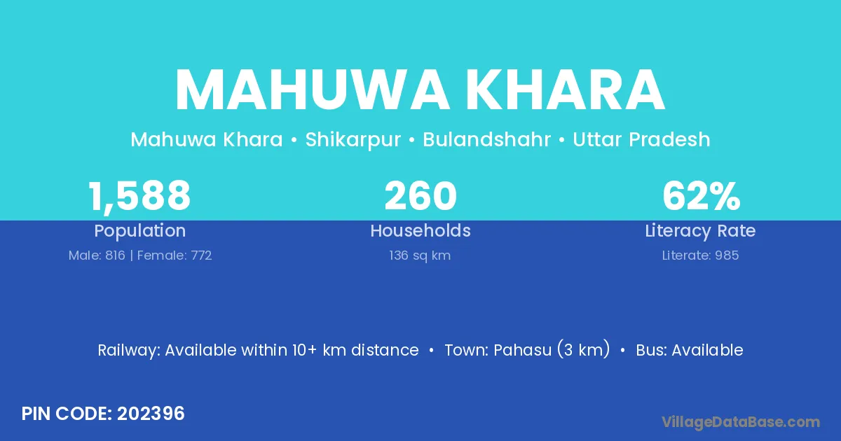 Pahasu (3 km) is the nearest town to Mahuwa Khara village for major economic activities and is located approximately 3 km away.
