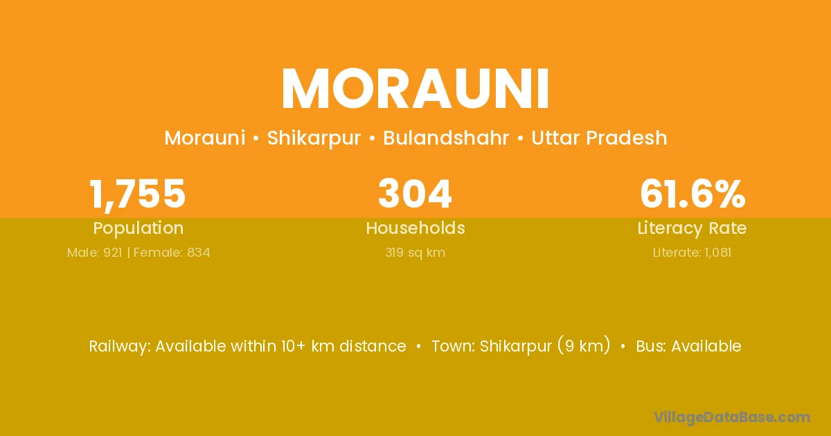 Shikarpur (9 km) is the nearest town to Morauni village for major economic activities and is located approximately 9 km away.