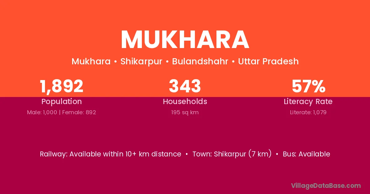 Shikarpur (7 km) is the nearest town to Mukhara village for major economic activities and is located approximately 7 km away.