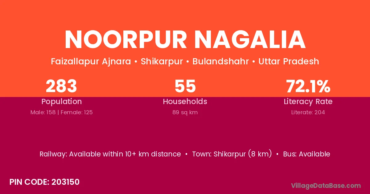 According to Census 2011 information, the village code of Noorpur Nagalia village is 203150.