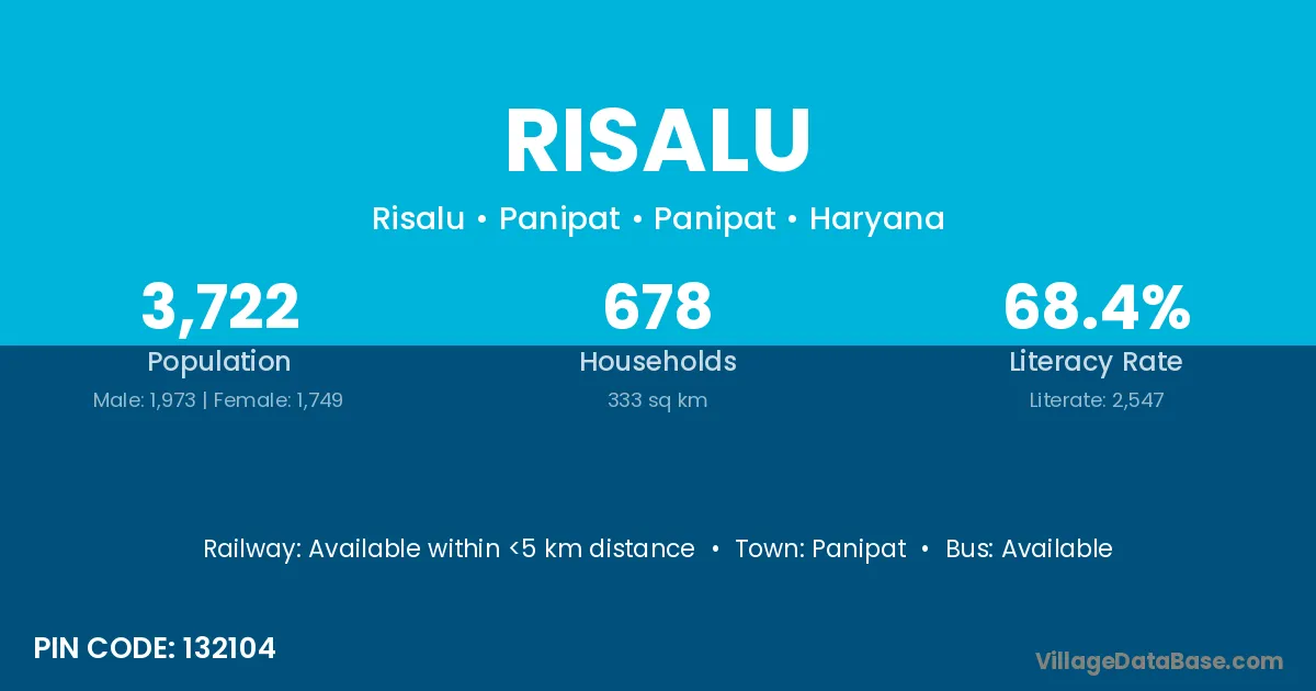 Risalu village has a total population of 1,990 people, of which 1,047 are males and 943 are females.
