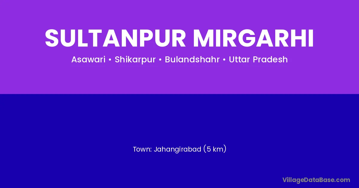 Jahangirabad (5 km) is the nearest town to Sultanpur Mirgarhi village for major economic activities and is located approximately 5 km away.