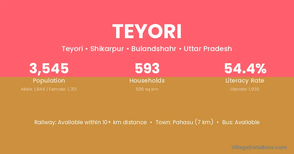 Pahasu (7 km) is the nearest town to Teyori village for major economic activities and is located approximately 7 km away.