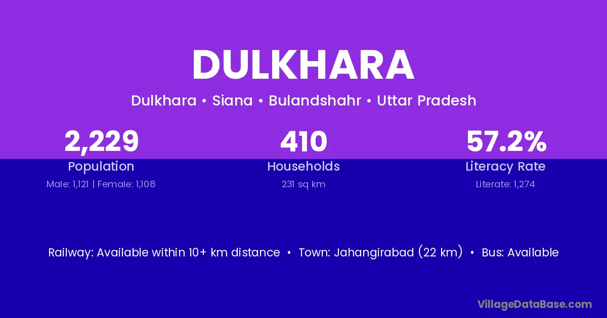 Jahangirabad (22 km) is the nearest town to Dulkhara village for major economic activities and is located approximately 22 km away.