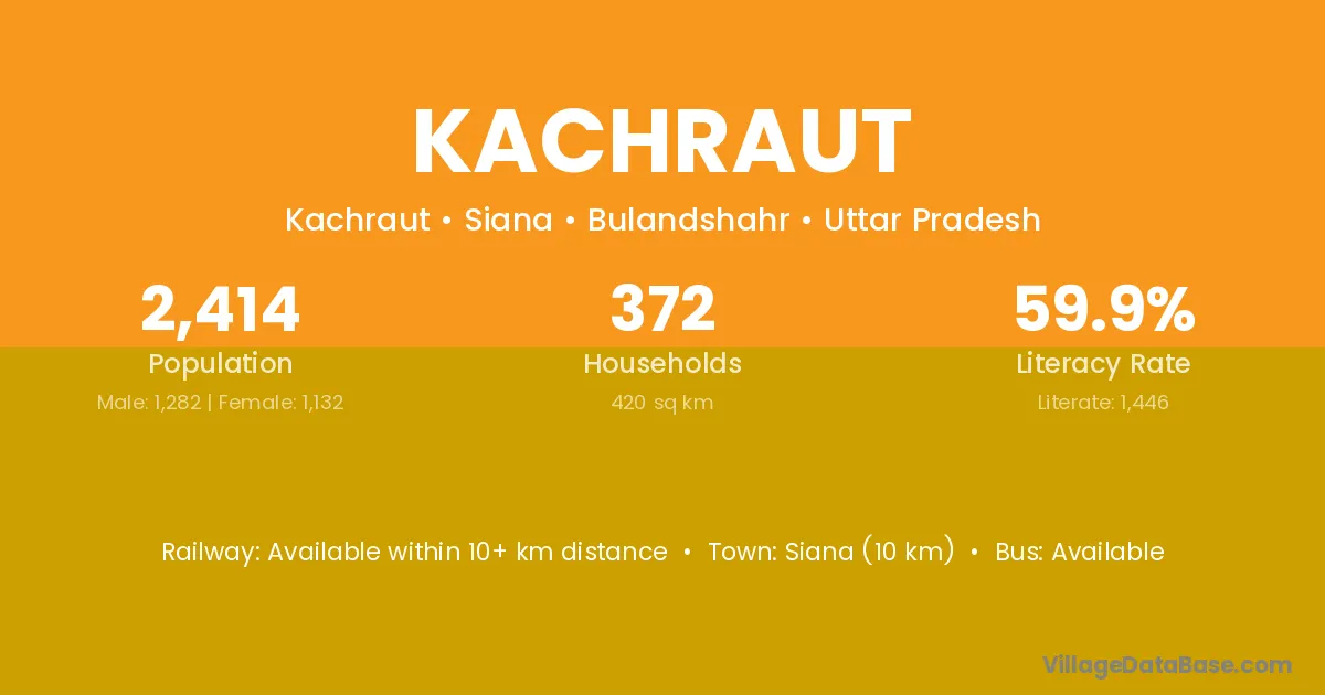 Siana (10 km) is the nearest town to Kachraut village for major economic activities and is located approximately 10 km away.