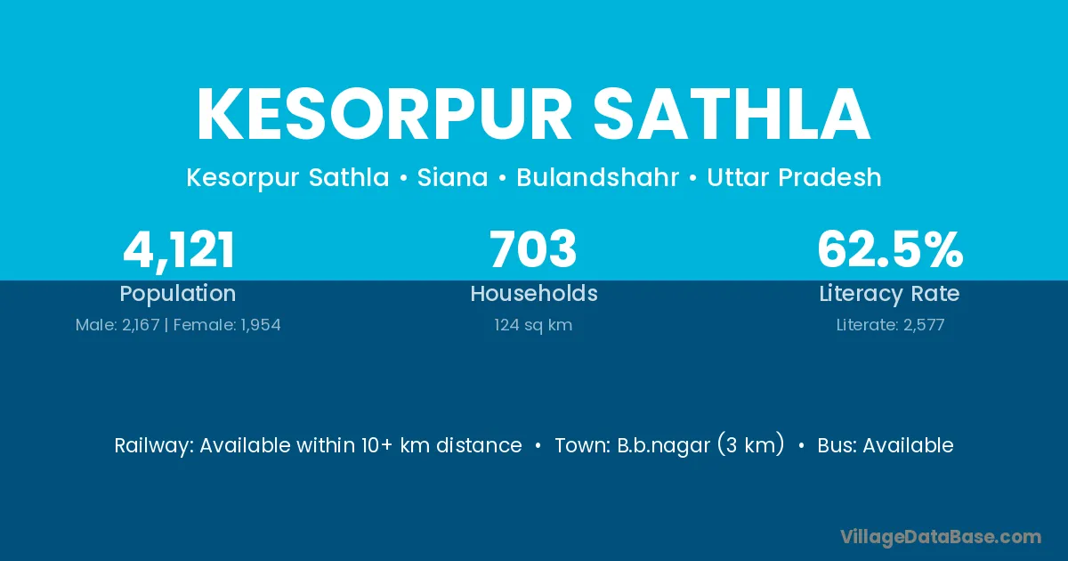 Kesorpur Sathla village has a total population of 4,121 people, of which 2,167 are males and 1,954 are females.